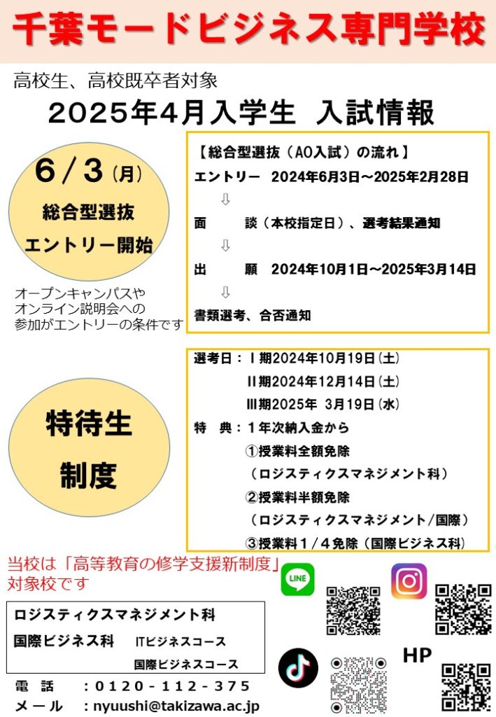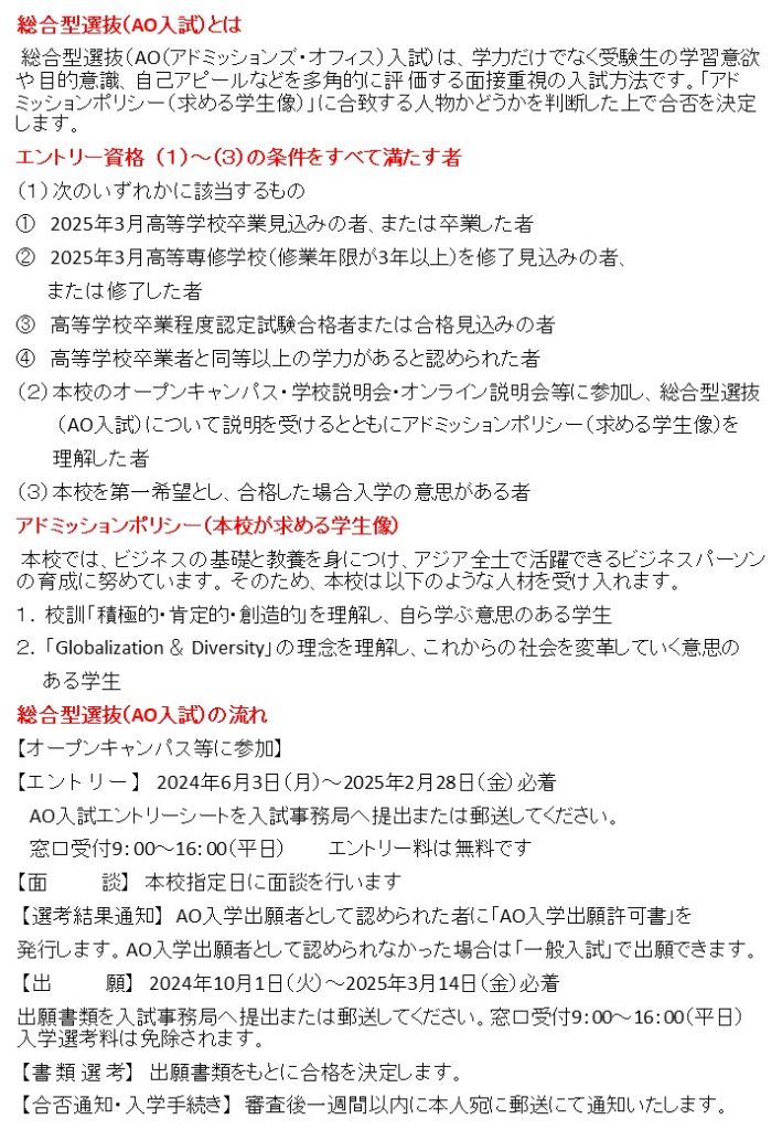 2025年4月入学生 総合型選抜(AO入試) 6/3エントリー受付開始