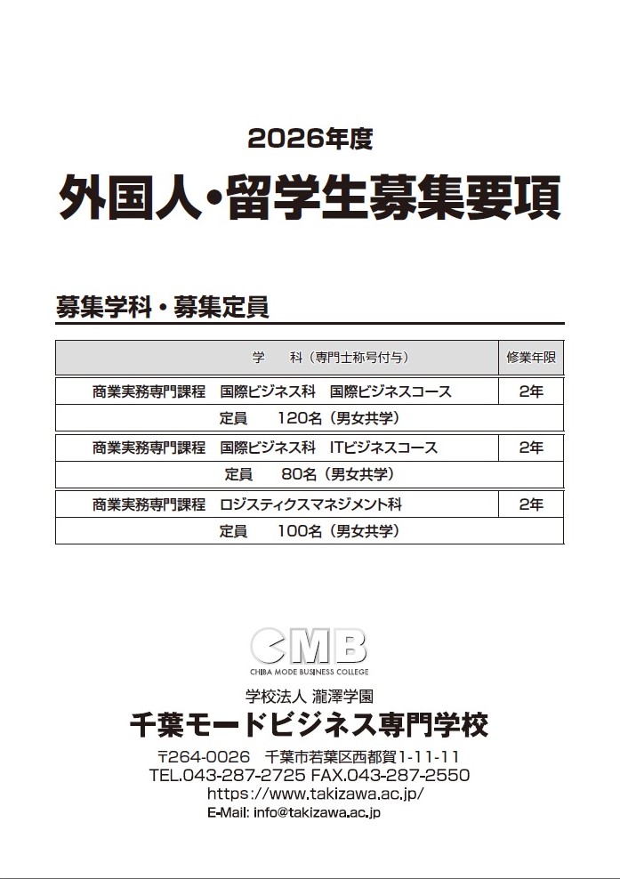 2026年4月入学外国人・留学生の募集は終了しました。